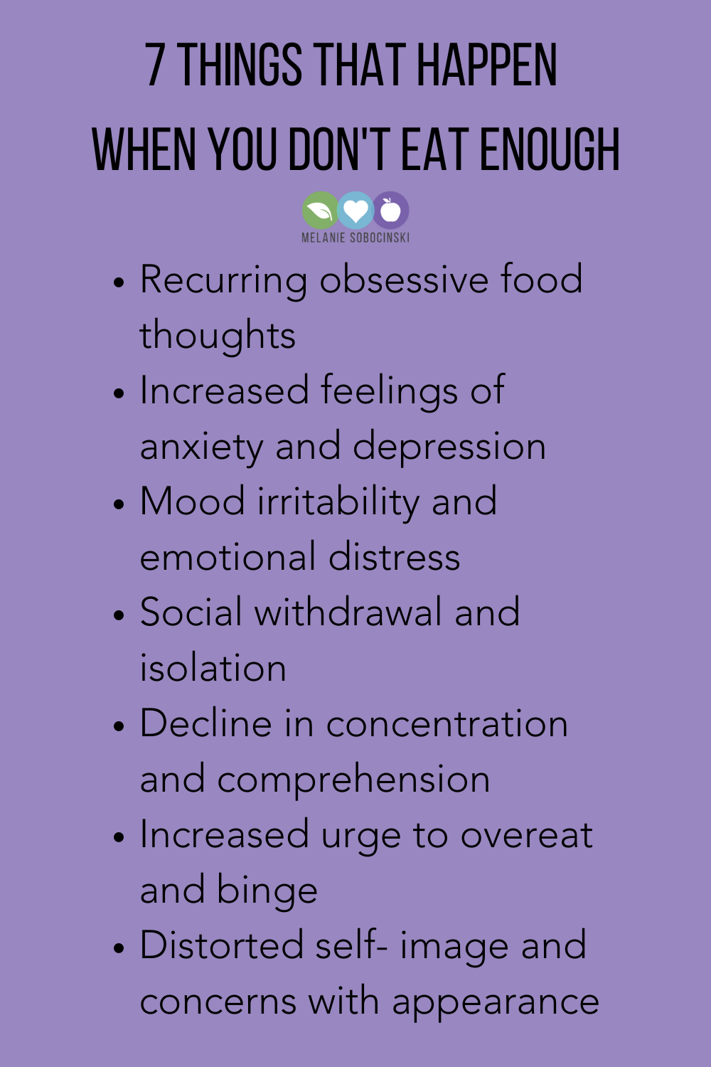 Your brain needs constant fuel to be able to function properly. When you are under eating and under nourishing, your body goes through a lot of changes that you might not realize are even a result of under eating and constant dieting…It’s NOT you, it’s your diet.