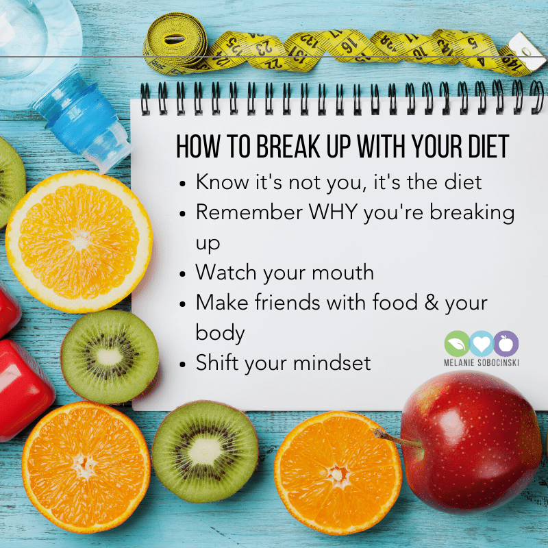 Choosing to fully break up with your diet doesn’t mean that you give up or let yourself go. It means that you choose your health over a number on the scale or a clothing size. There is a difference.