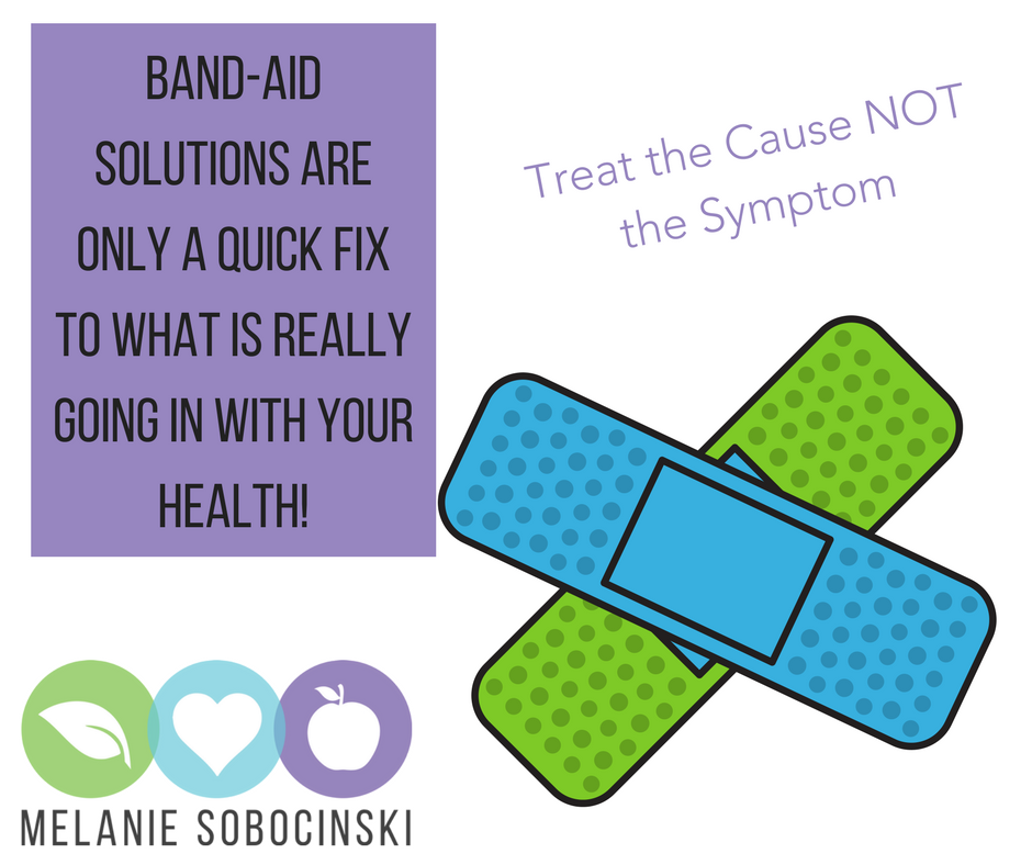A band-aid fix is just a cover-up to mask the symptoms. That band-aid may be a shot or a pill or an ointment or whatever your doctor is telling you to use. In reality, it may only be a short fix to cover up the symptoms for a while.