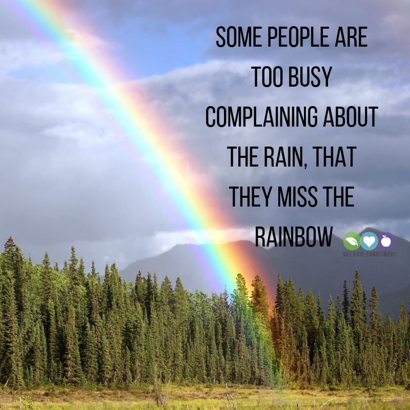 Too many of us are too damn busy complaining about the rain that we are missing the rainbow. It’s time to start seeing the positive and that starts with YOU! Change your thoughts and you can change your life.