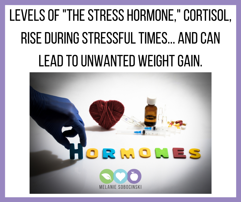 Levels of “the stress hormone,” cortisol, rise during stressful times… and YES, it can lead to weight gain. This increased level can also cause higher insulin levels causing your blood sugar to drop and leaving you crave sugary, fatty foods.